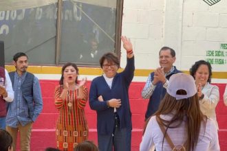 Delfina Gómez, candidata de MORENA, PT y PVEM a la gubernatura del Estado de México,…